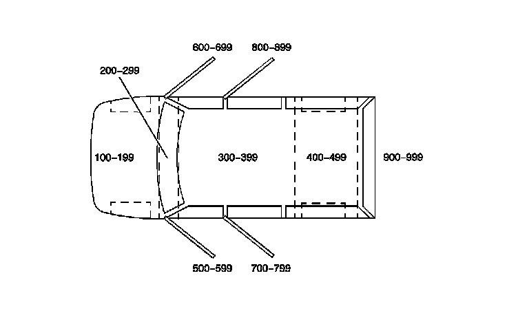 All grounds, in-line connectors, pass-through grommets, and splices have identifying numbers that correspond to where they are located in the vehicle. The table explains the numbering system.