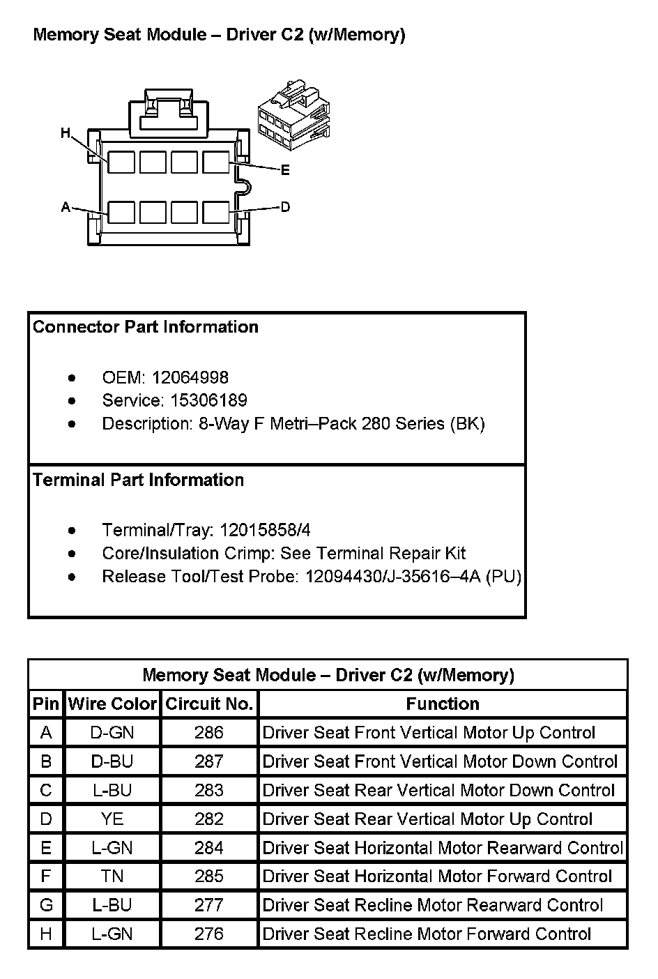 Memory Seat Module - Driver C2 (w/Memory):