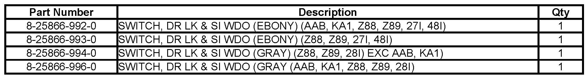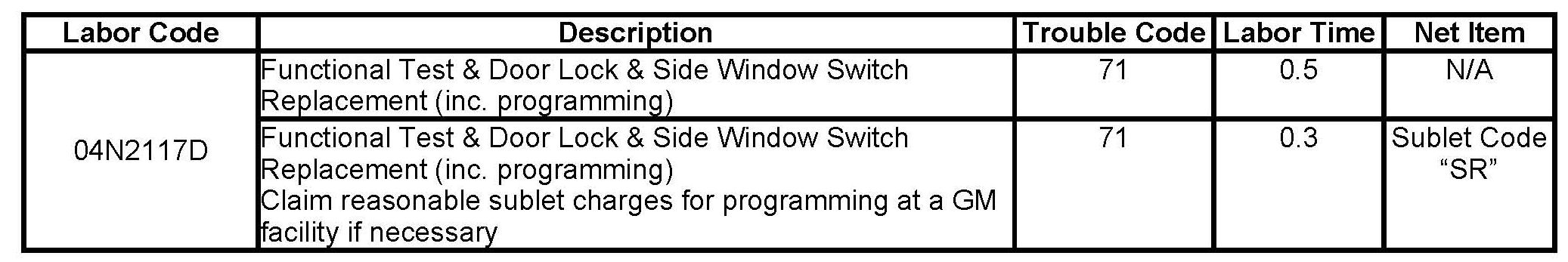 - If the driver side door lock and side window switch does NOT need to be replaced, determine cause of vehicle condition. Additional diagnostic time and repairs are NOT covered under this field action bulletin.