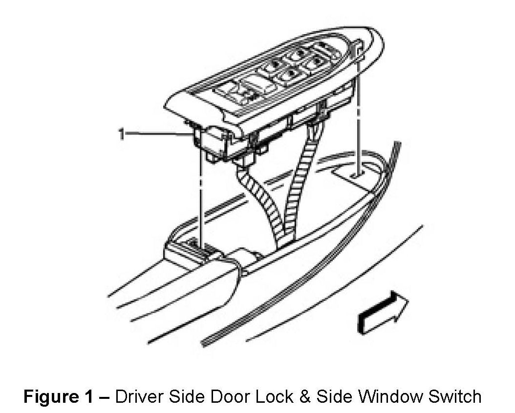 3. Determine the part number on the driver side door lock and side window switch. The part number is on the side of the switch on the label (See Figure 2).