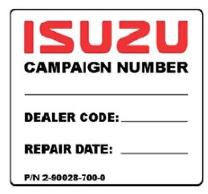 Parts required to complete this campaign are to be obtained from American Isuzu Parts Distribution Network (AIPDN).