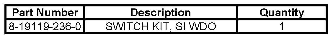 b) If the part number on the switch is NOT listed on the table above, proceed to Step 4.