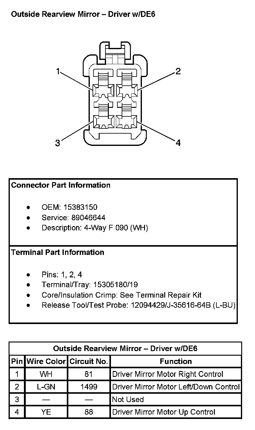 Outside Rearview Mirror - Driver (With RPO Code DE6):