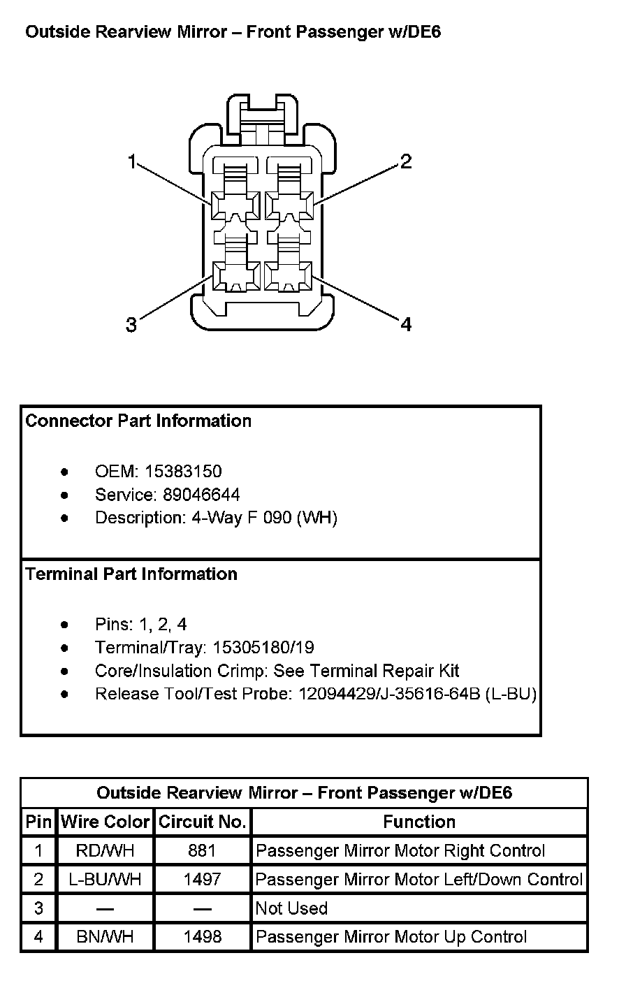 Outside Rearview Mirror - Front Passenger (With RPO Code DE6):