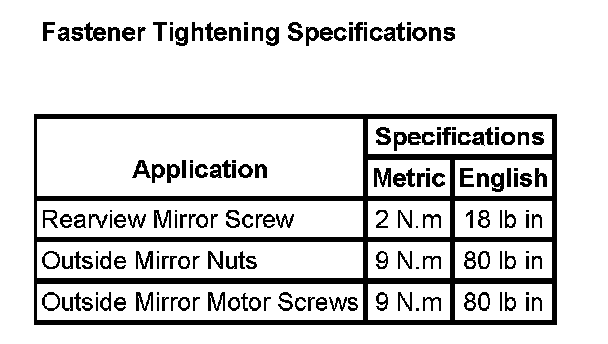 Fastener Tightening Specifications: