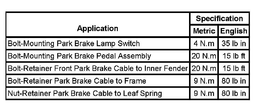 Parking Brake System: Specifications
