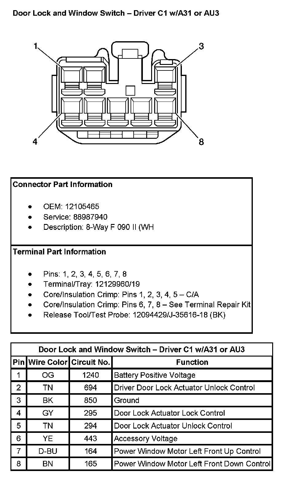 Door Lock And Window Switch - Driver C1 (With RPO Code A31 Or AU3):