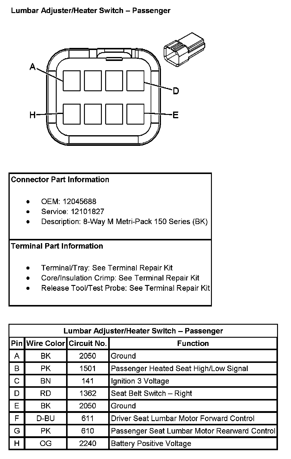 Lumbar Adjuster/Heater Switch - Passenger:
