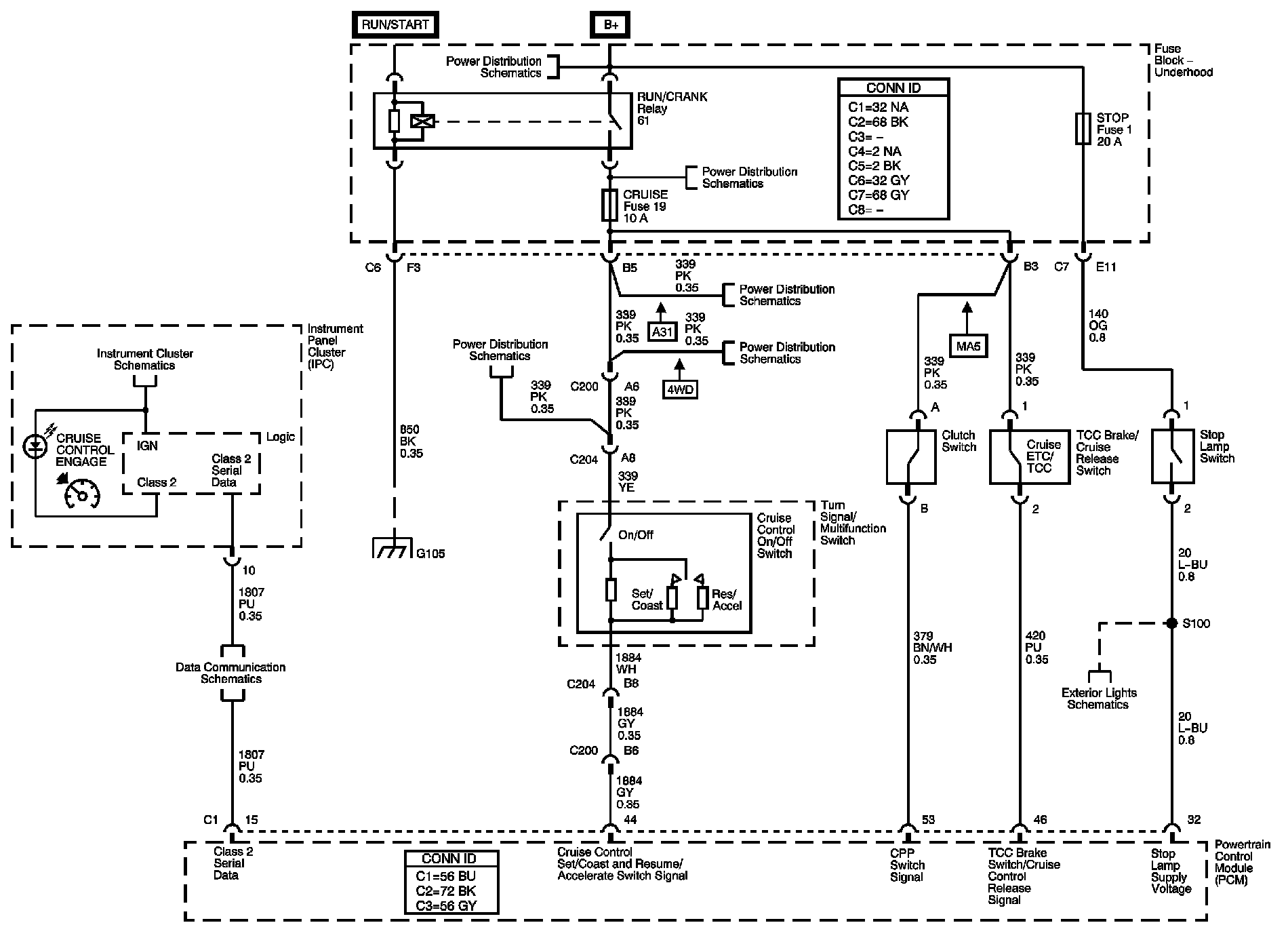 The locations for the Connectors, Grounds, Splices, and Grommets shown within these diagrams can be found via their numbers at Vehicle Locations.