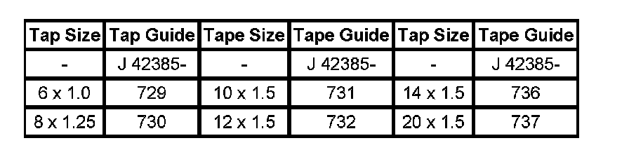 The tool kit J 42385-400 is designed for use with either a suitable tap wrench or drill motor. Limited access and larger hole repair may process better using a tap wrench. An extension J 43965 may also be necessary to drive the thread repair tooling dependent on access to the hole being repaired.