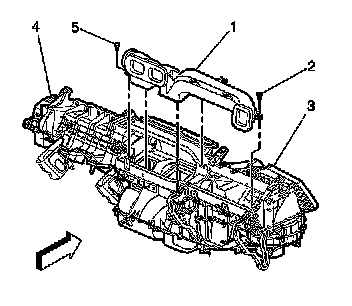 1. Install the air distributor duct (1) to the instrument panel.