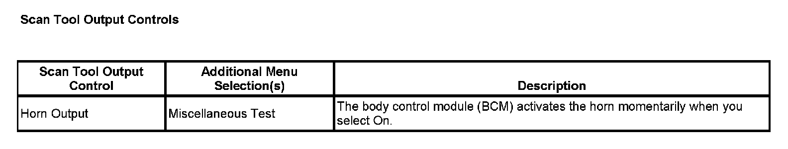 Scan Tool Output Controls: