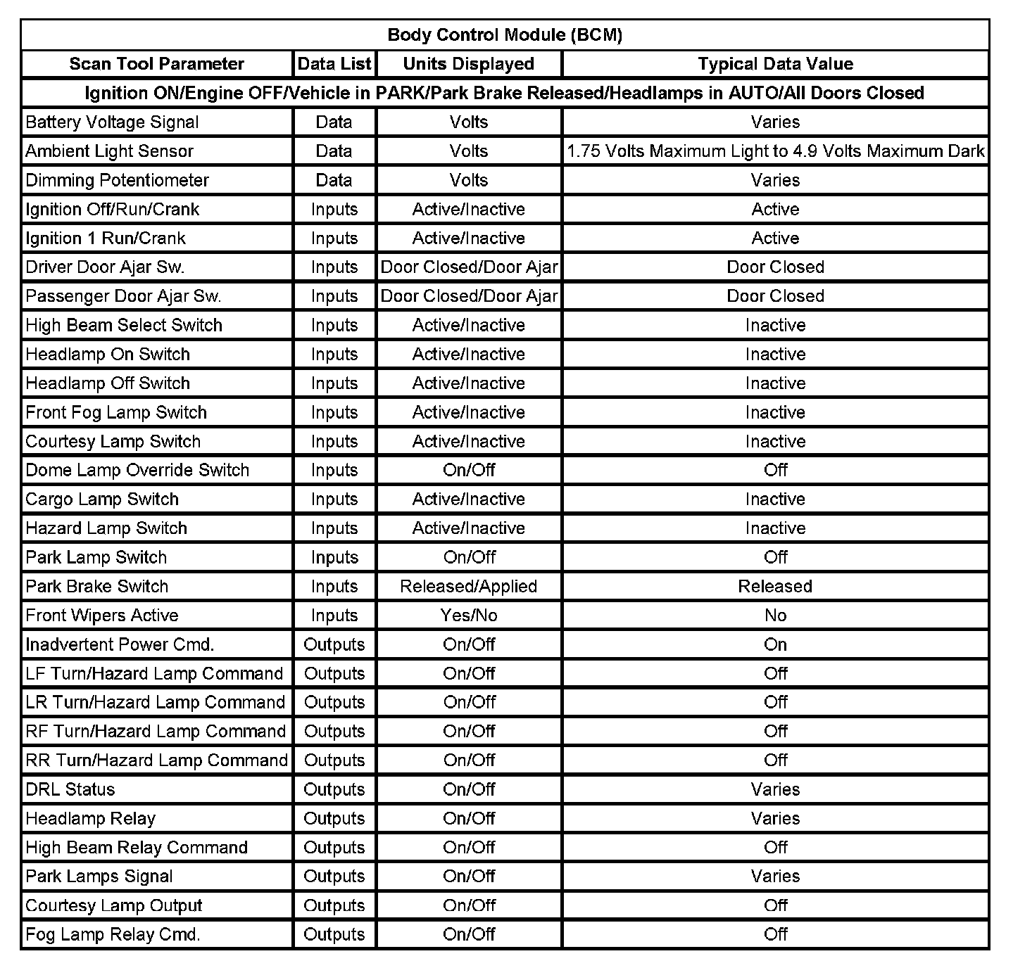 Body Control Module (BCM):
