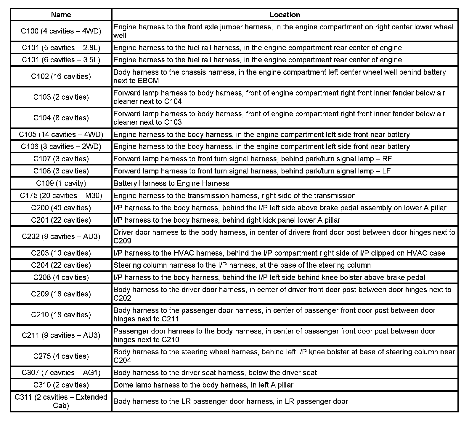 Connector Locations