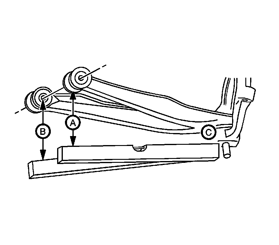Important: Measure the metal to metal contact points of the rear axle to the frame on the inboard side of the leaf springs.
