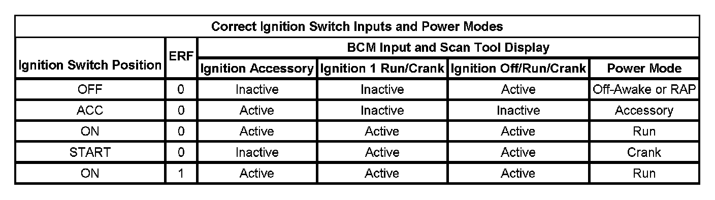 Correct Ignition Switch Inputs And Power Modes: