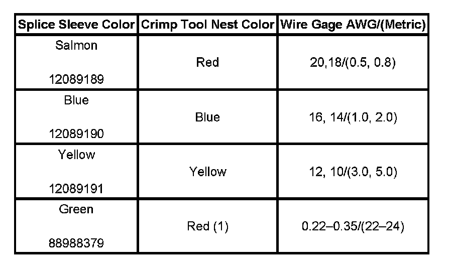 5. Select the proper duraseal splice sleeve (2) and the required crimp nest tool. Refer to the Crimp and Seal Splice Table.