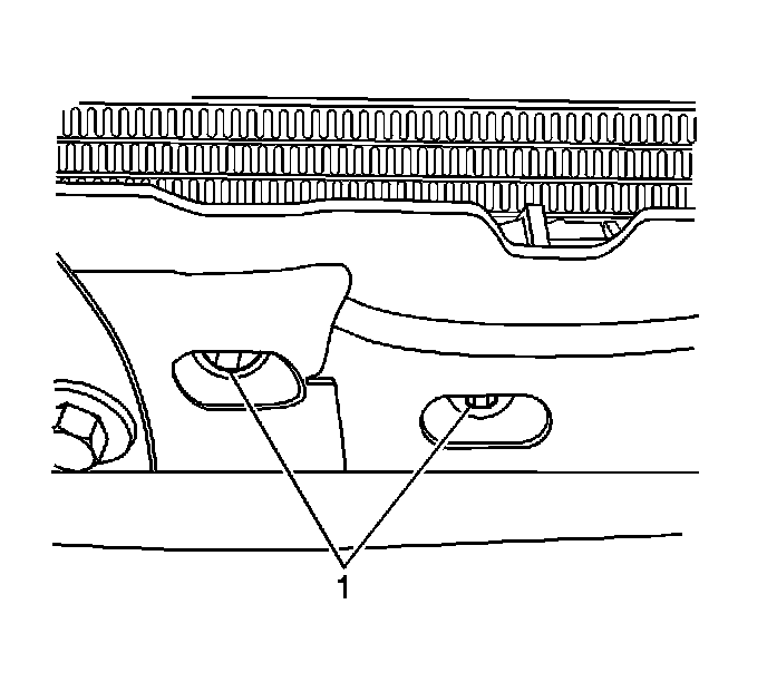 6. Install the 2 fasteners (1) retaining the discriminating sensor assembly to the radiator support.