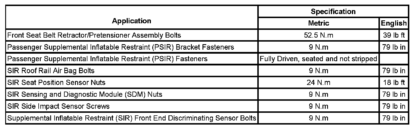 Fastener Tightening Specifications