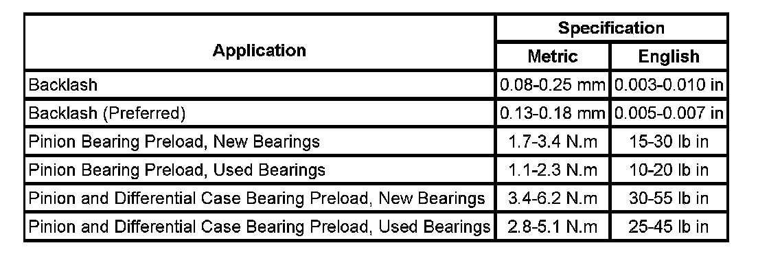 Axle Preload and Backlash Specifications: