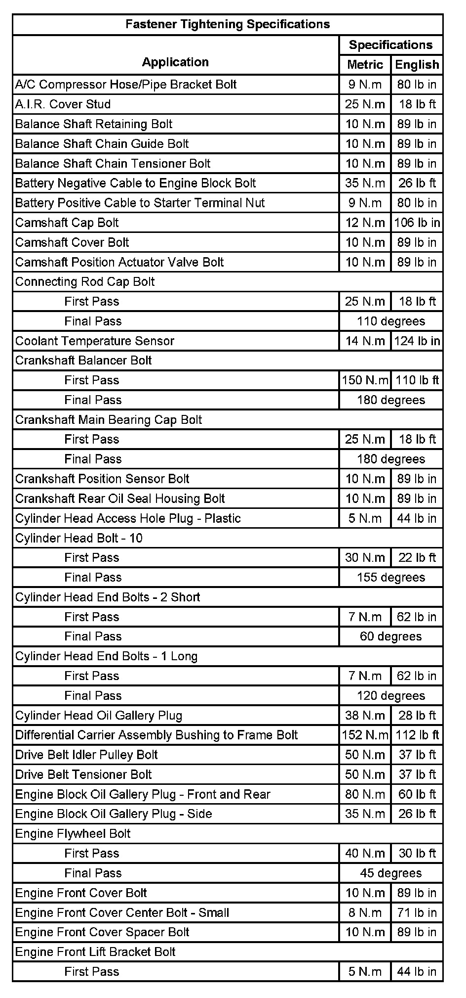 Fastener Tightening Specifications (Part 1):