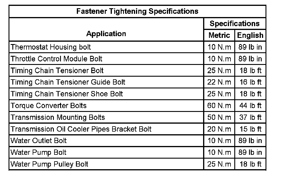 Fastener Tightening Specifications