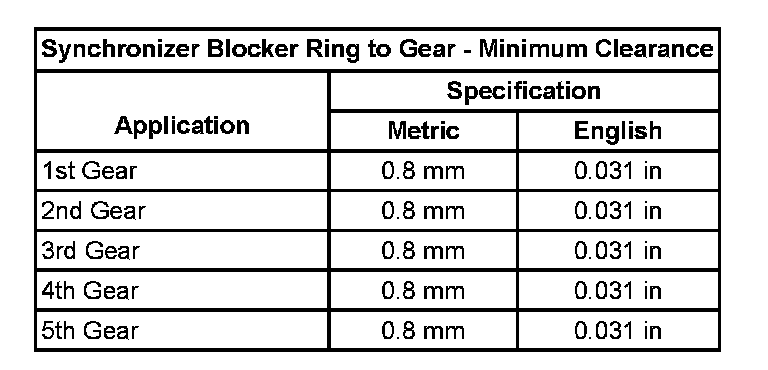 Synchronizer Blocker Ring to Gear - Minimum Clearance: