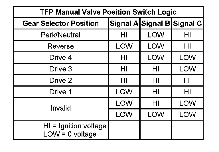 Transmission Fluid Pressure Manual Valve Position Switch Logic: