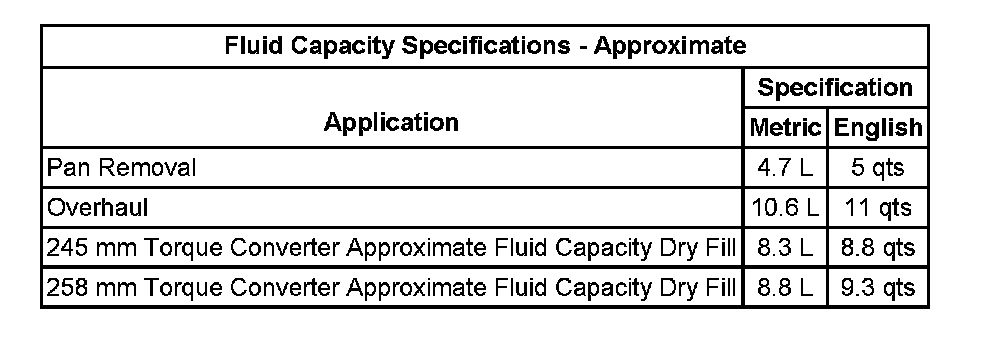 Fluid Capacity Specifications: