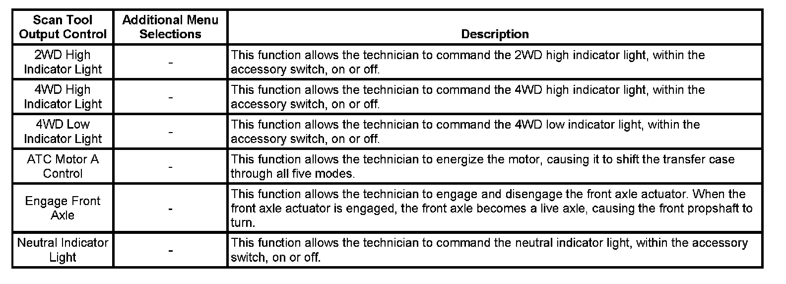 Scan Tool Output Controls: