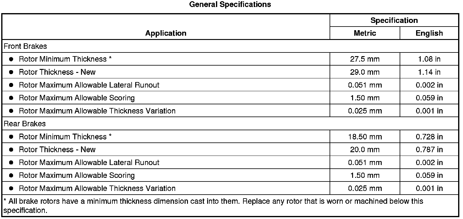 Disc Brake Component Specifications