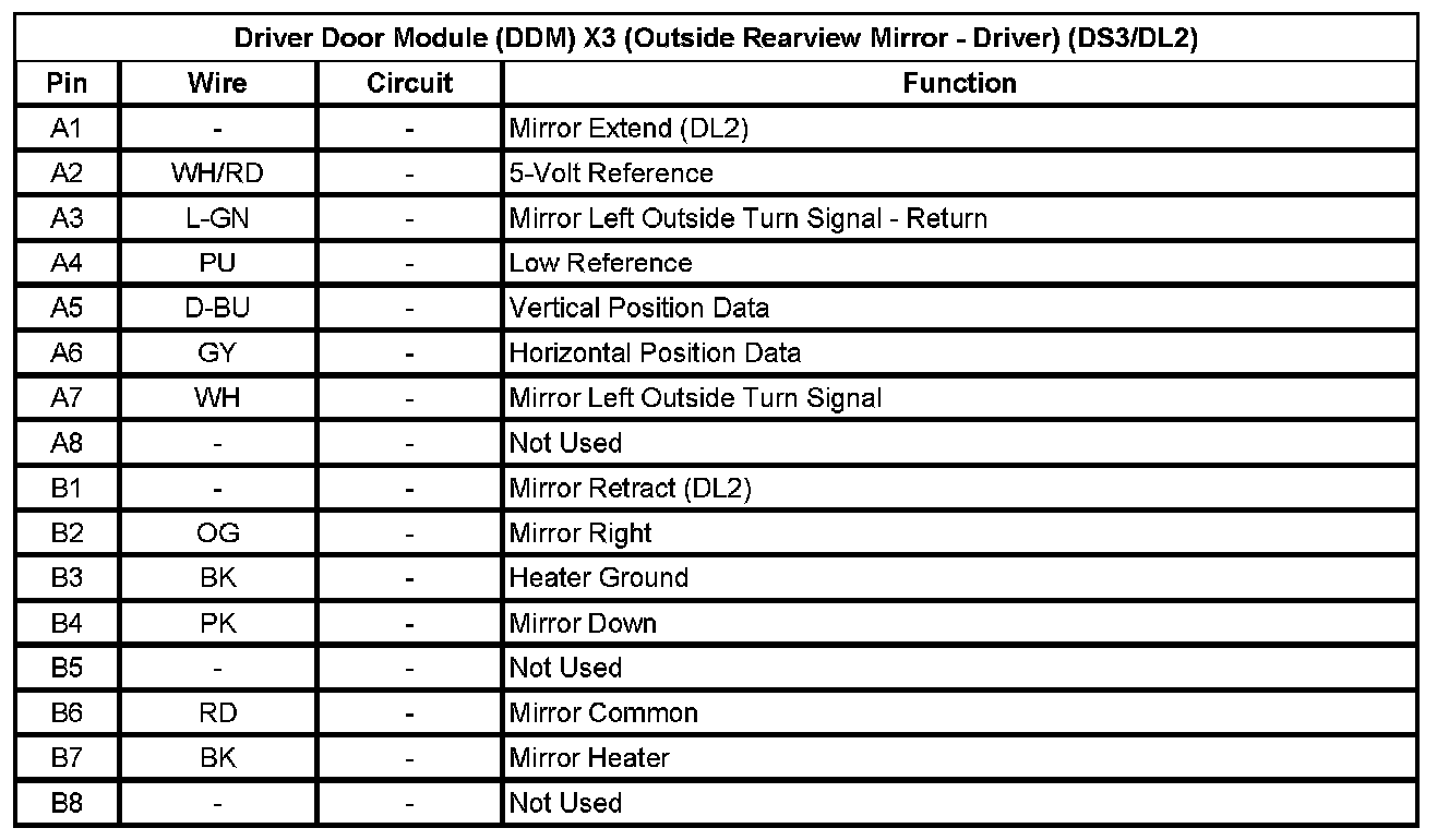 Driver Door Module (DDM) X3 (Outside Rearview Mirror - Driver) (DS3/DL2)