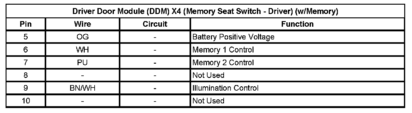 Driver Door Module (DDM) X4 (Memory Seat Switch - Driver) (w/Memory)