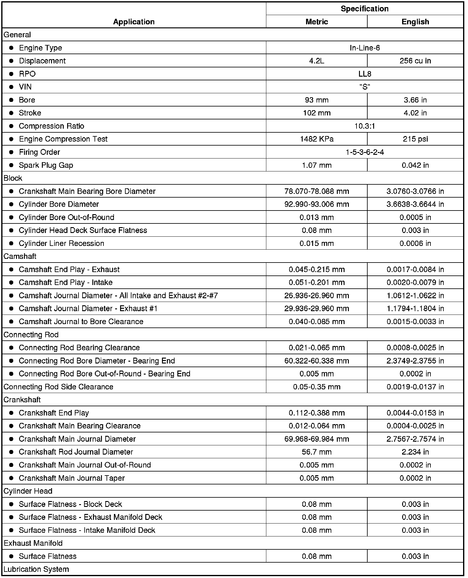 Engine Mechanical Specifications (4.2L)
