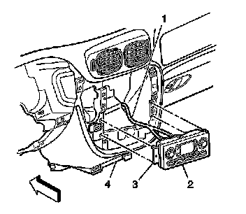 3. Depress the HVAC control module retaining tabs (3) and remove the HVAC control module (2) from the instrument panel (4).