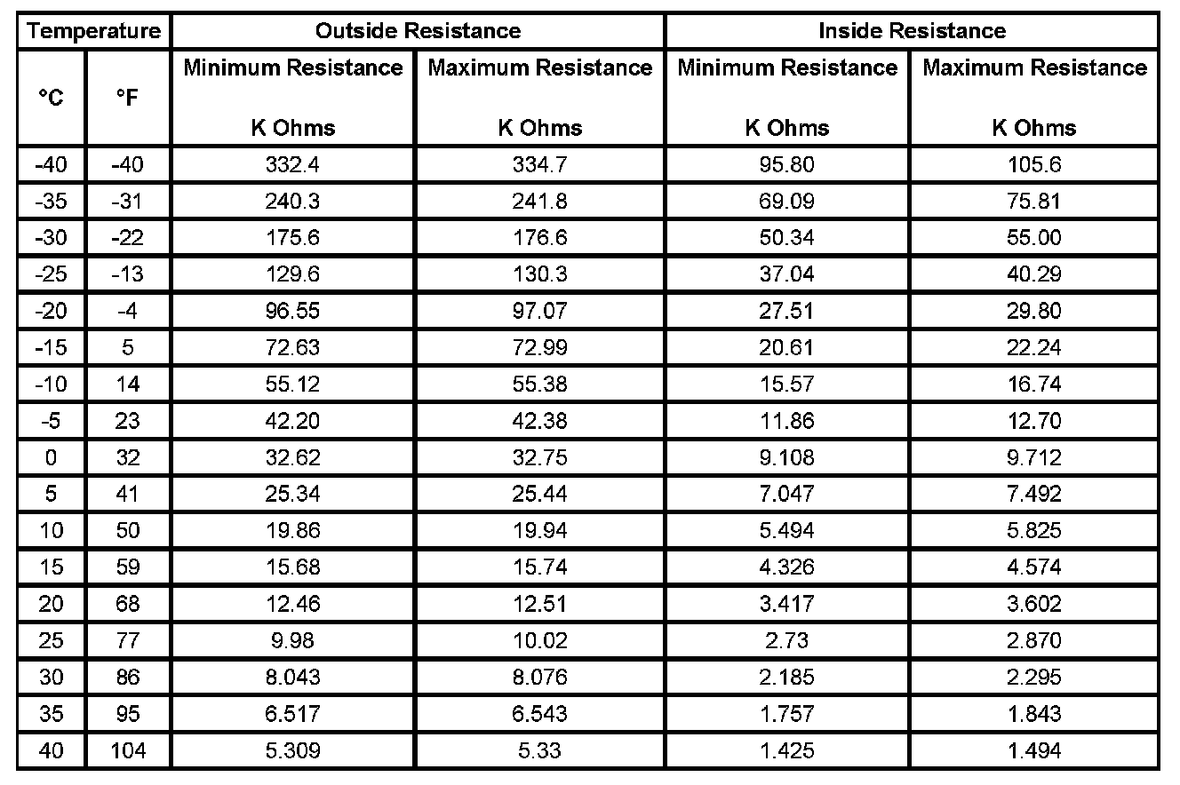 Sensor Resistance Table