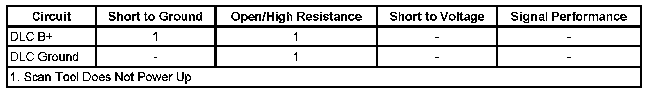 2. Ignition ON, verify a test lamp illuminates between the B+ circuit terminal 16 at the DLC and ground.