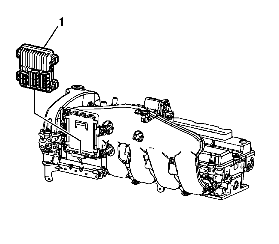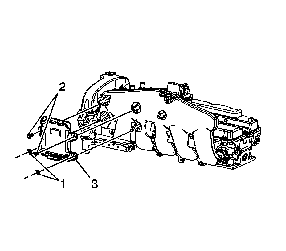 1. Install the ECM and bracket assembly (3) to the studs on the intake manifold