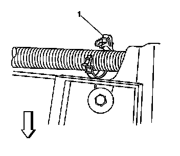 3. Remove the headlamp wire harness from the retaining clip (1).