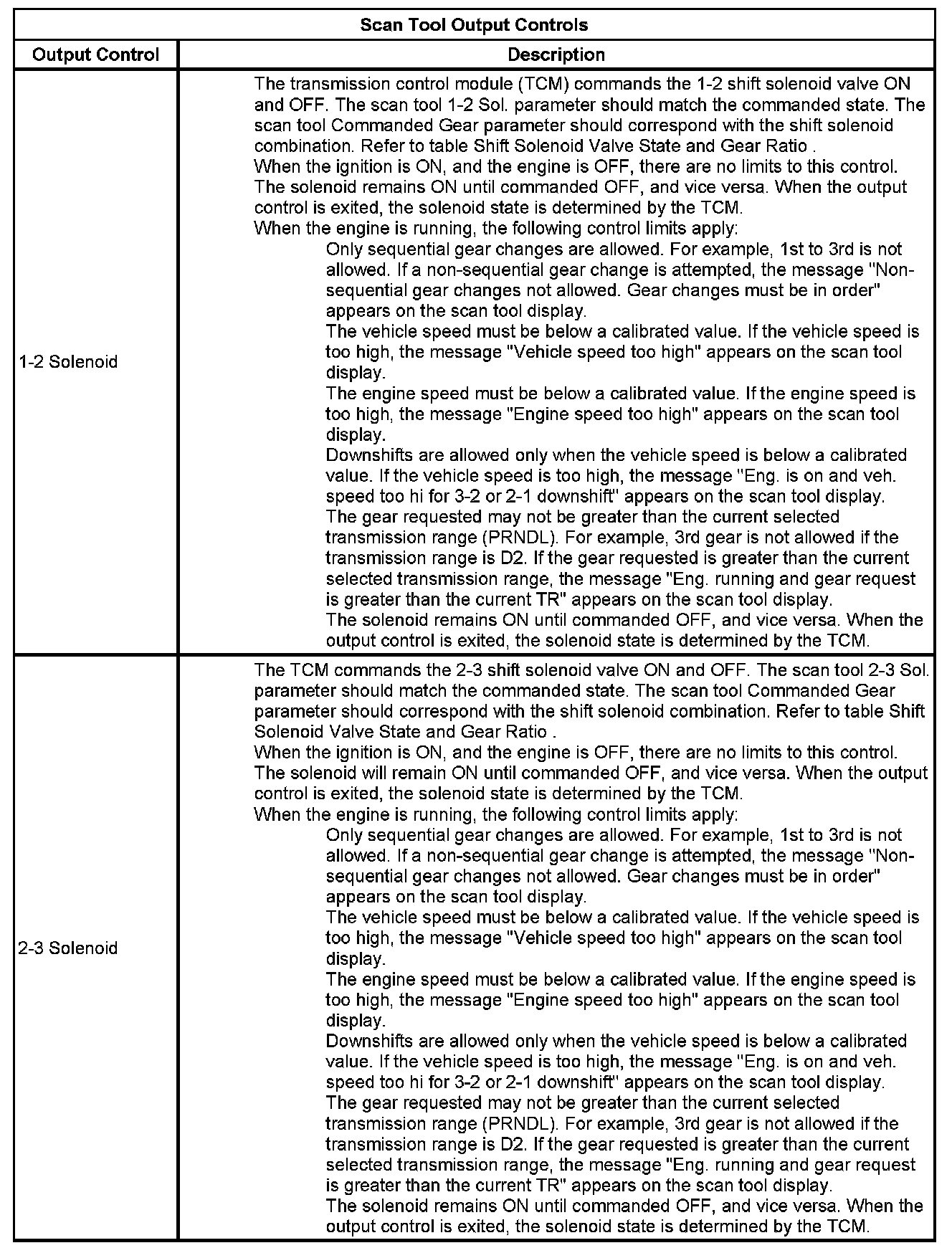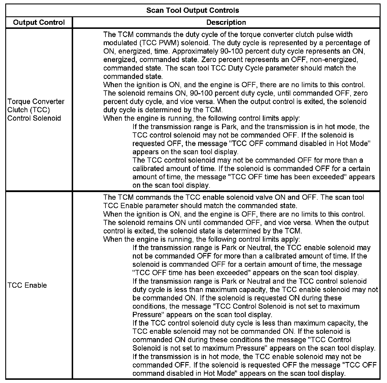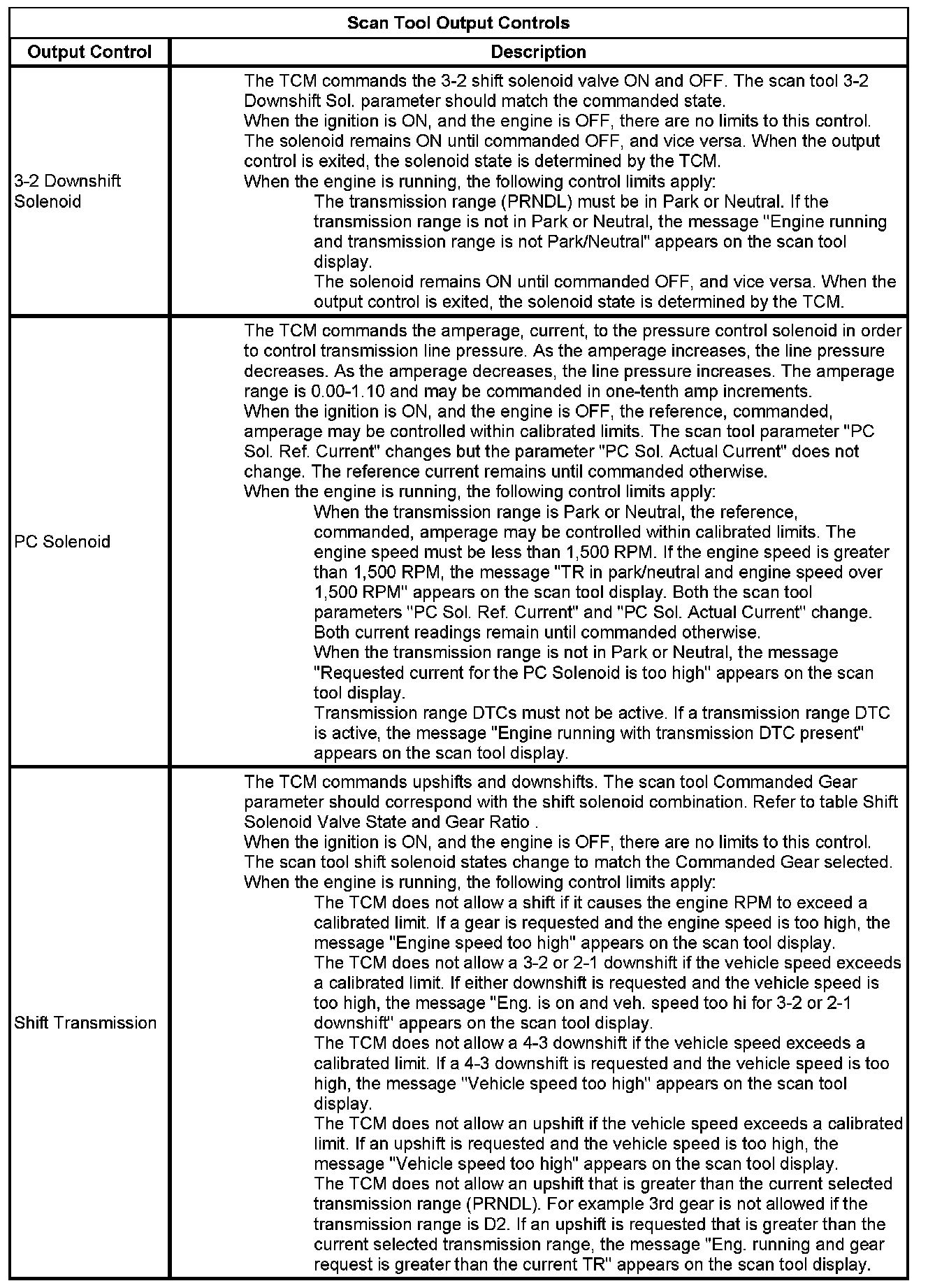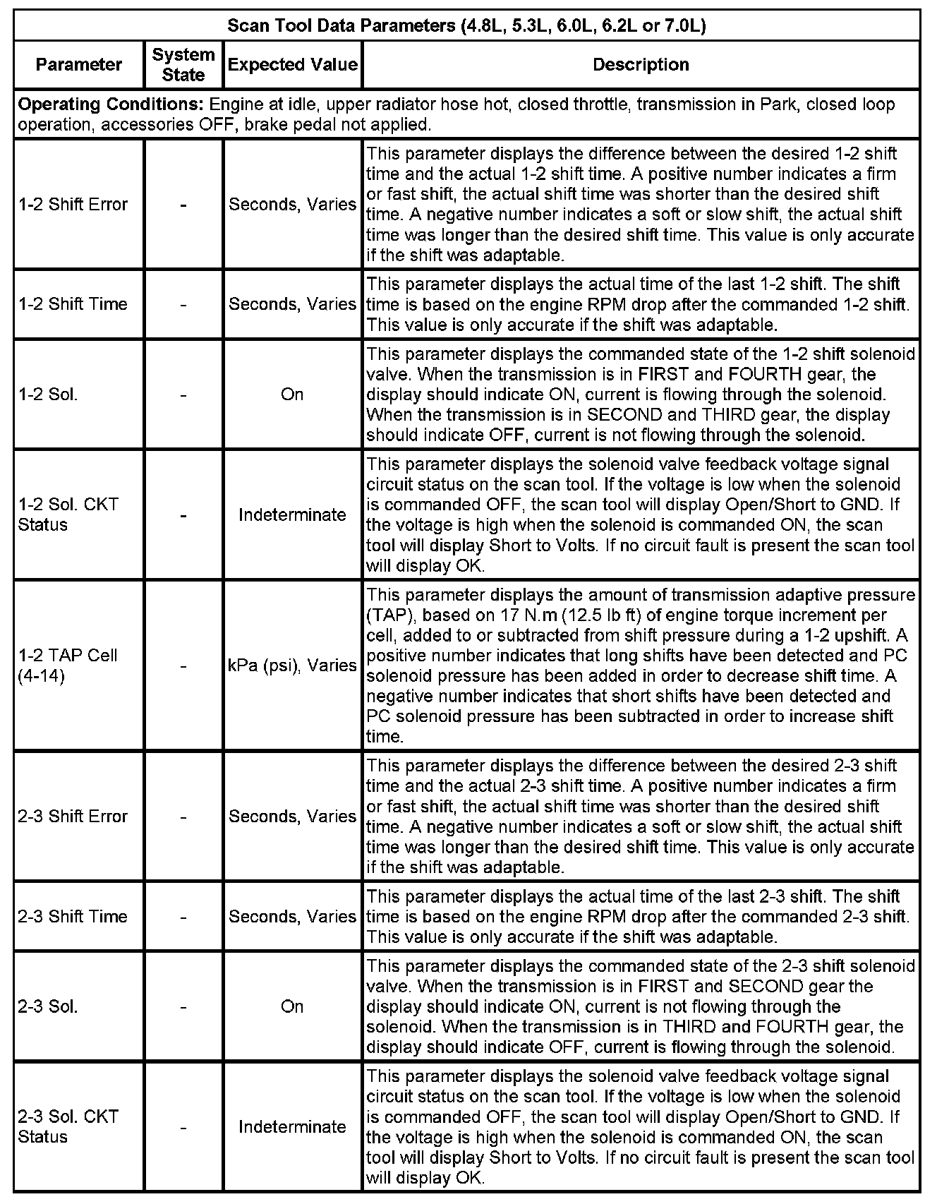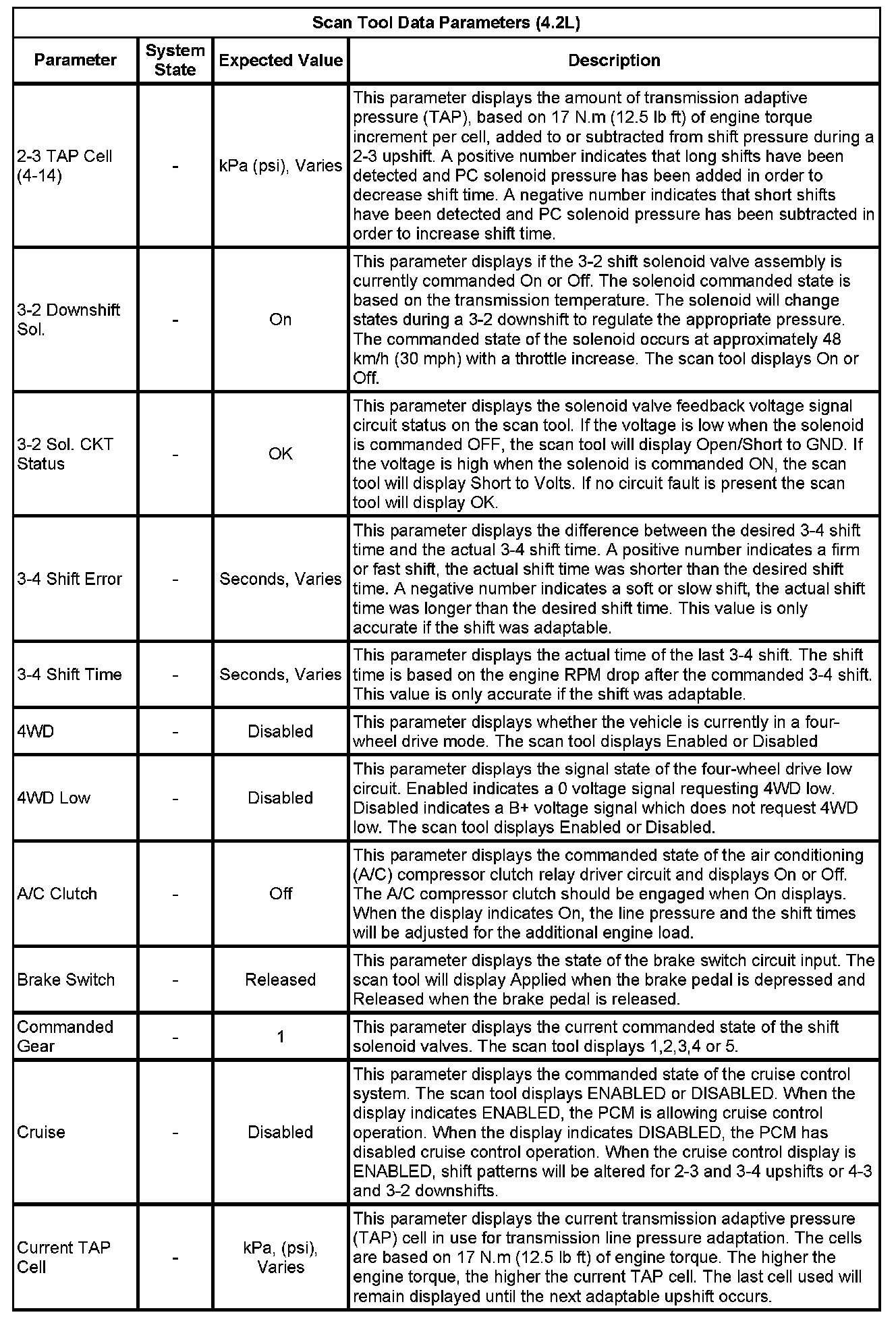 The Transmission Control Module Scan Tool Data List contains all transmission related parameters that are available on the scan tool. The list is arranged in alphabetical order. A given parameter may appear in any one of the data lists, and in some cases may appear more than once, or in more than one data list in order to group certain related parameters together.