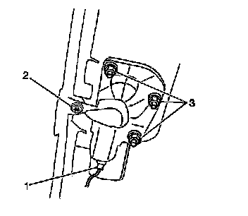 7. Disconnect the window bracket to actuator arm (1) by loosening screw (2).