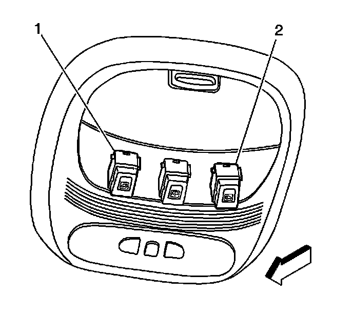 4. Using the body side power window switches (1 or 2) at the overhead console, push the switch in order to position the bellcrank at a 45 degree angle to the sheet metal flange.