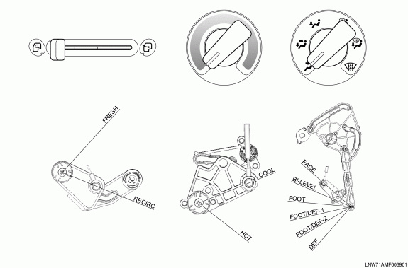 - Set the blower ASM link (intake door) position to "RECIRC", connect the control cable and fasten it to the lock clamp.