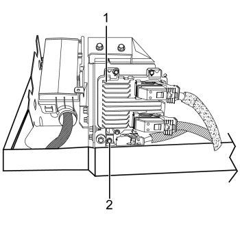 2. Connect the engine wiring harness electrical connectors (2) to the ECM (1).