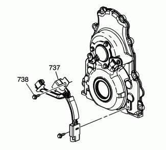 7. Install the 3 CMP sensor wire harness bolts (738).
