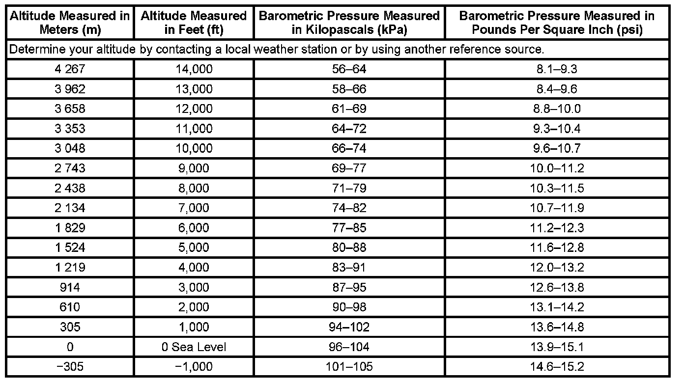 Altitude vs Barometric Pressure