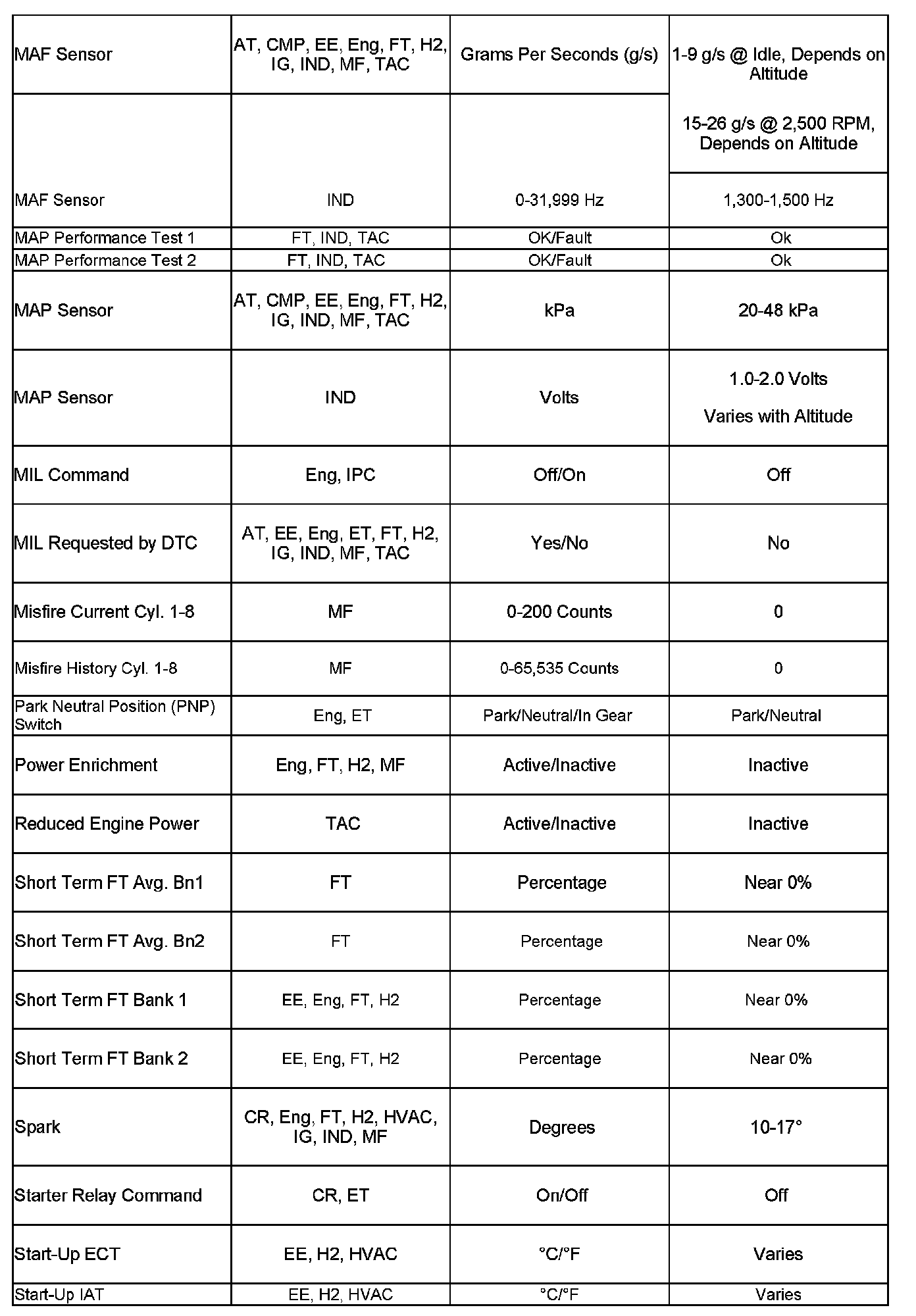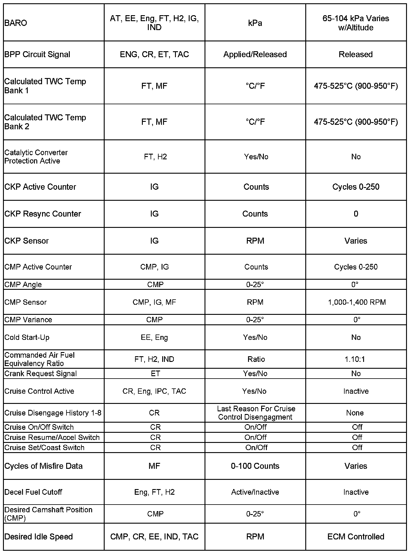 Only the parameters listed below are referenced in this service manual for use in diagnosis. If all values are within the typical range described below, Symptoms - Engine Controls for diagnosis.
