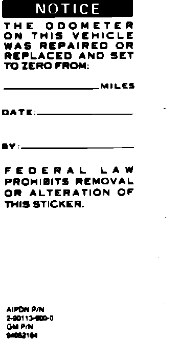 An odometer label is included in each new speedometer assembly. Additional labels we also available. (See the "Parts Information" section of this Service Bulletin.)