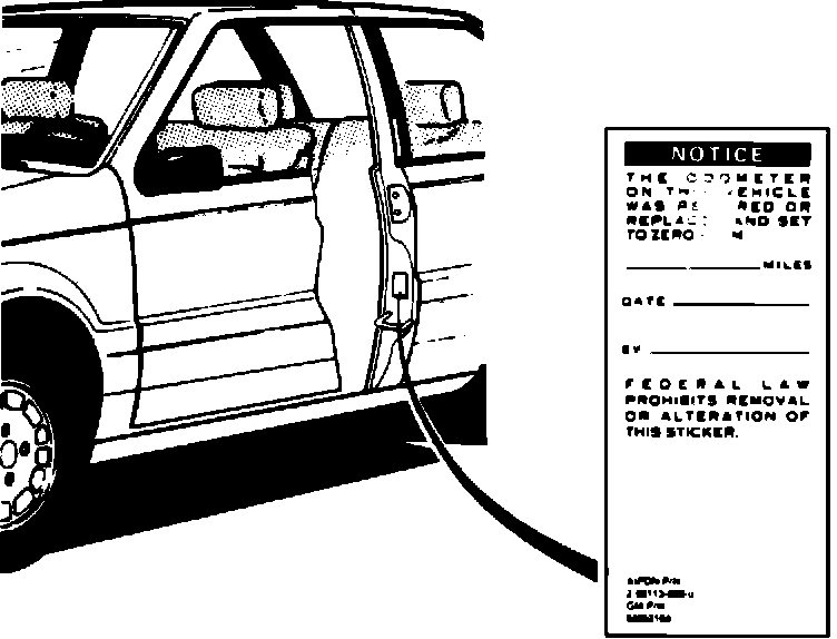 In order to comply with Federal law, after replacing a speedometer assembly, dealers must fill out an odometer label and install it onto the "B" pillar. The mileage written on the label must be the same as the odometer reading before speedometer replacement.