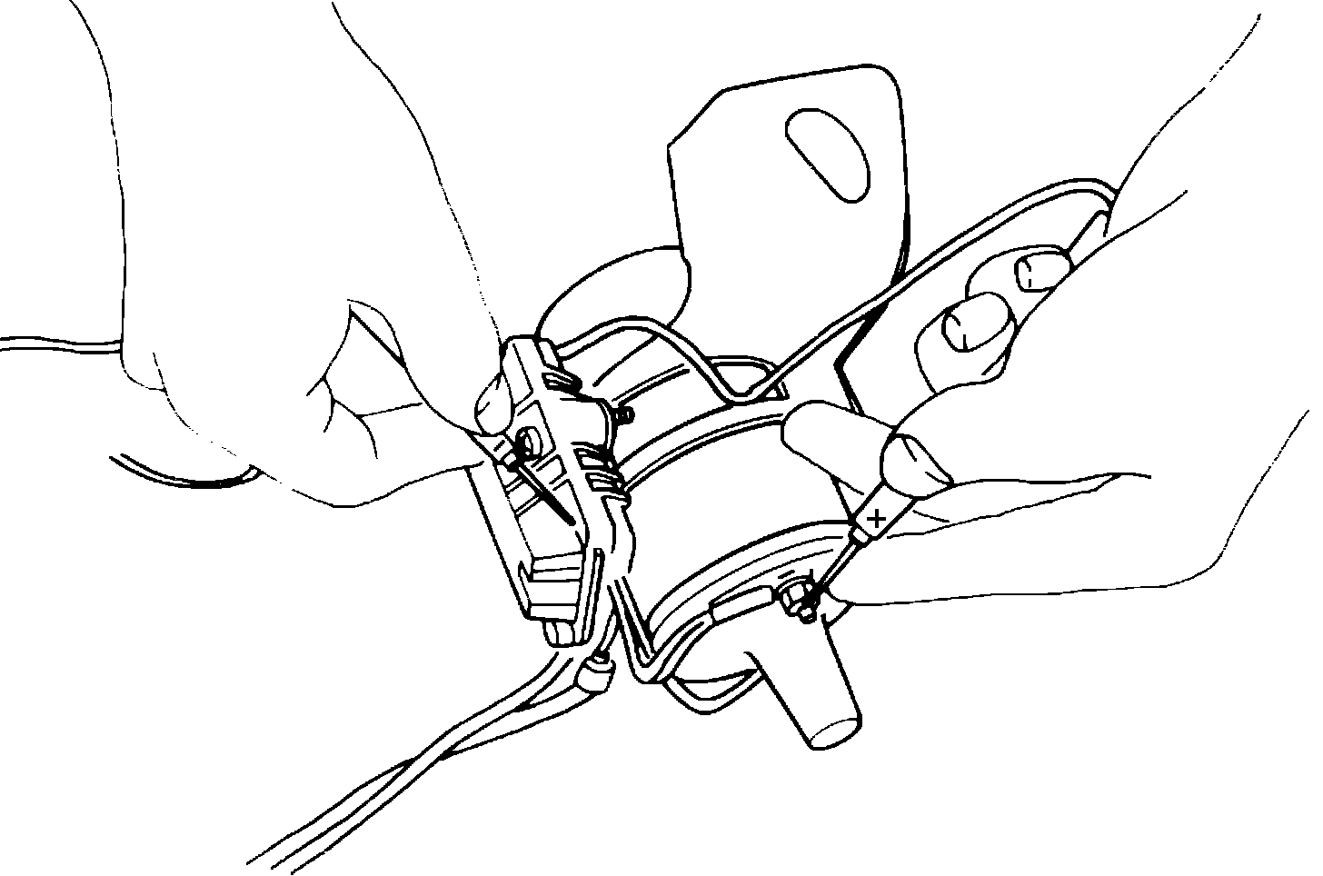 2. Check power source line voltage by connecting voltmeter positive probe to ignition coil positive terminal and the negative probe to ground. Voltmeter should indicate approximately 12 volts.